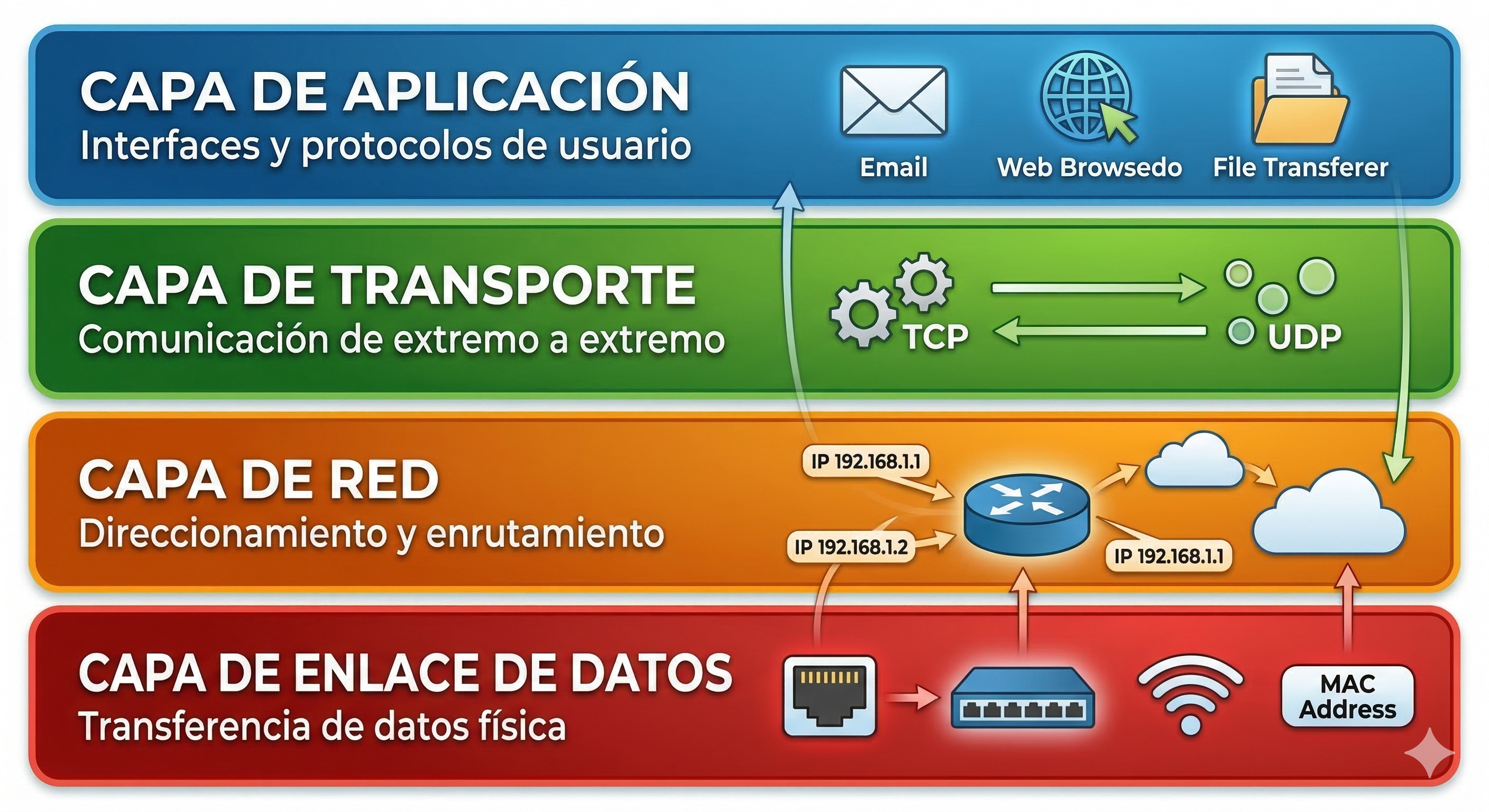 El modelo TCP/IP se divide en cuatro capas: